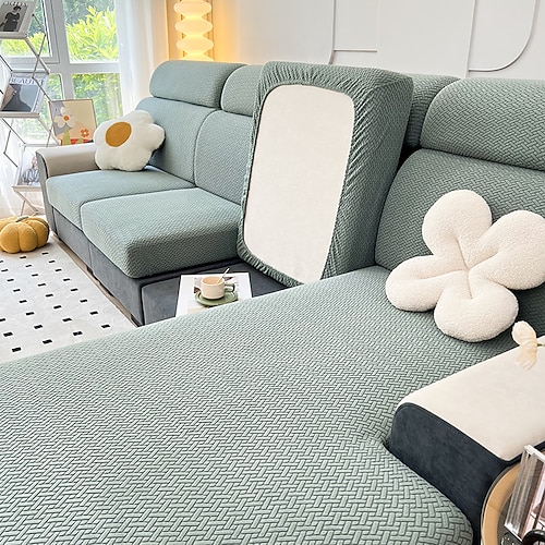 1Pc Jacquard Sofa Cover Wear resistant Elastic Suede Solid Color Premium All Seasons Universal Sofa Cover Thickened Anti slip Universal Sofa Cover