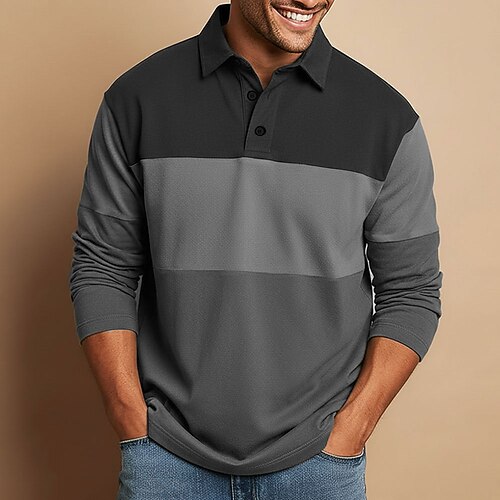 Per uomo Strisce orizzontali Polo da rugby Manica Lunga Magliette polo Camicie con Colletto Abbigliamento Sportivo Casual Scuola All'aperto Athleisure Stampa 3D Primavera Autunno Inverno Blu Viola