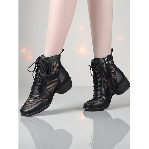 stivali da ballo da donna in pelle a rete con lacci - stivaletti da ballo da sala/latino traspiranti e leggeri con cerniera laterale per l'allenamento delle prestazioni femminili
