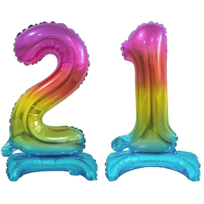 Stehender Folienballon Zahl 21 Regenbogen bunt 38 cm