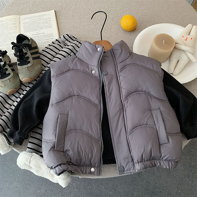 Kids Boys' Vest Coat Outerwear Solid Color Sleeveless Keep Warm Coat Outdoor Fashion Daily Black Khaki Gray Fall Winter 4 years