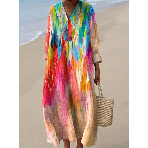 Per donna Abito maxi Vestito Estivo Abito a Tubino Vacanza Casual Spiaggia Uscire Vestibilità comoda Grafico Geometrico Astratto Manica Lunga Scollo a V Blu Giallo Rosa scuro Arancione Estate