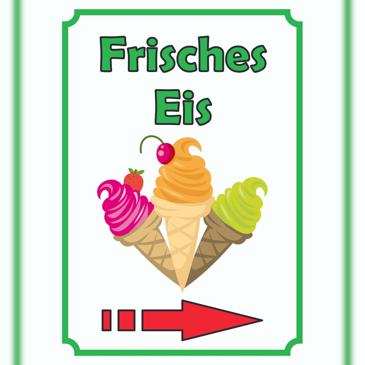 HB-Druck Frisches Eis Schild Hochkant mit Pfeil rechts A4 Rückseite selbstklebend
