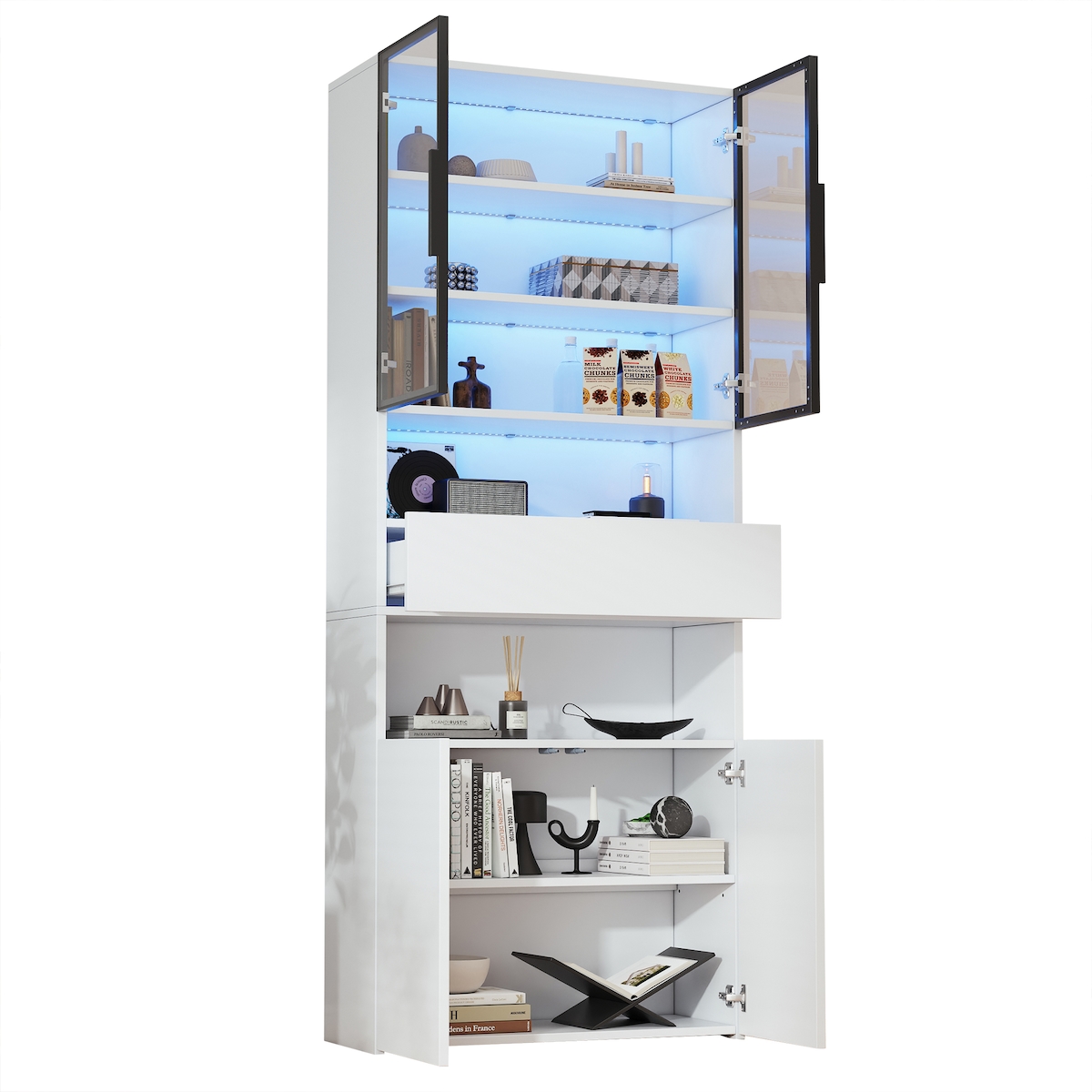 Vitrine HOME AFFAIRE "BELLOT Vitrineschrank mit 2 Türen, verglast, mit viel Stauraum", natur, B:106,6cm H:187,6cm T:40cm, Glas, Holzwerkstoff, Schränke, Vitrine, Standvitrine/Glasvitrine, matt Hochschrank, Masse B/T/H: 106/40/187 cm natur B/H/T: 106,6cm x