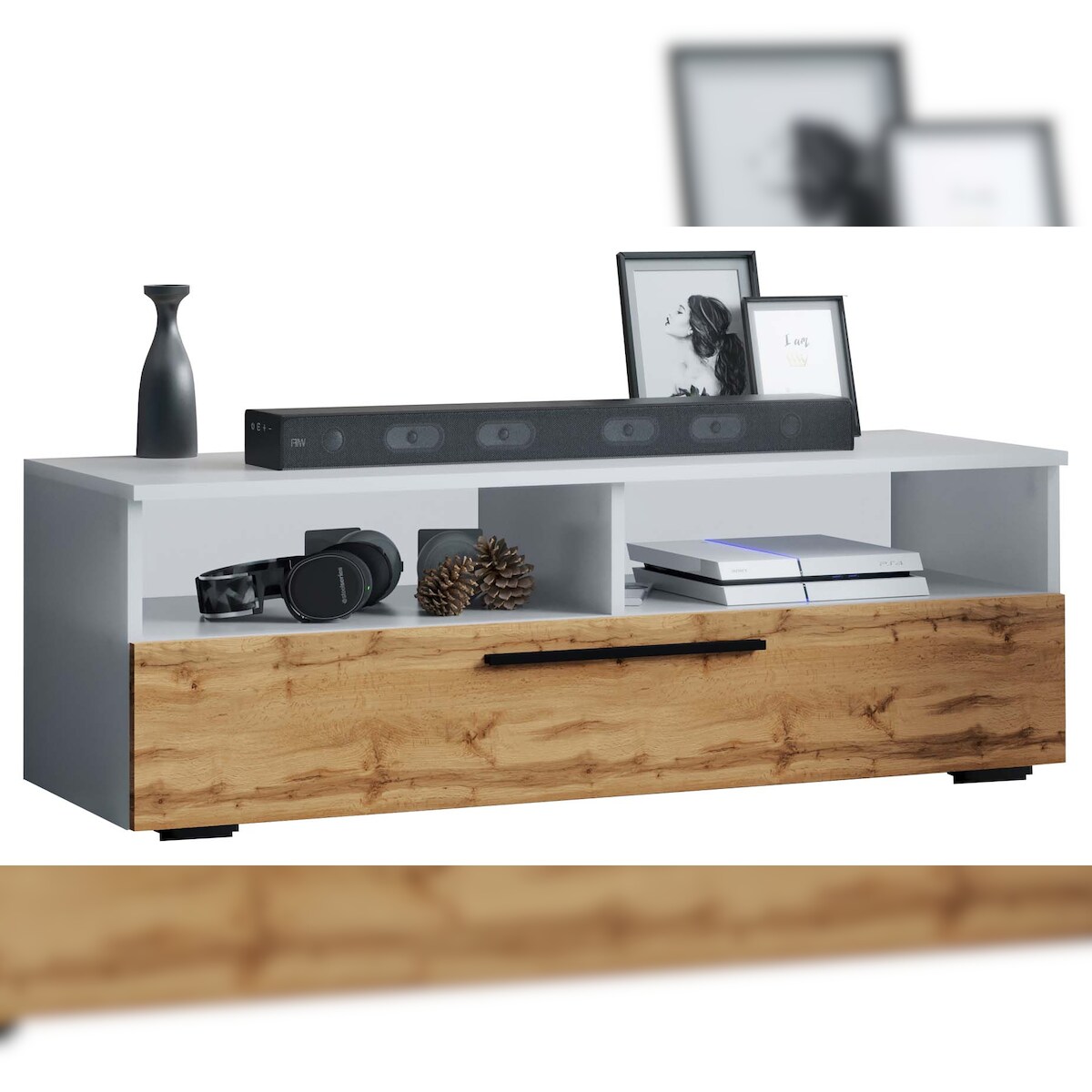 Ebuy24 ArilaXL TV Tisch 1 Klaptür 2 Ablagen weiß, Eiche dekor.