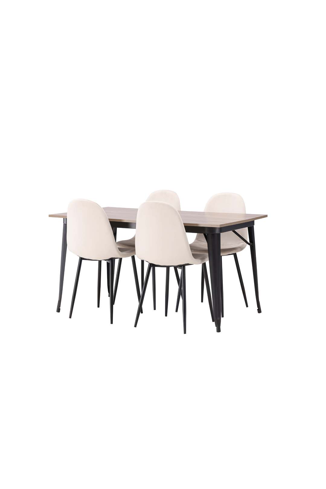 Tempe Essgruppe Tisch Nussbaum dekor und 4 Polar Stühle beige.