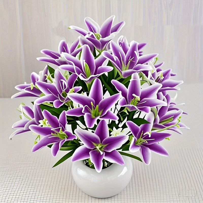 18 Head Artificial Lily Flowers - Elegant Faux Blooms, Perfect for Weddings, Parties, Christmas, Thanksgiving Decorations, Living Room, Bedroom, Dining Table Styling, and Instagram-Inspired Home Decor