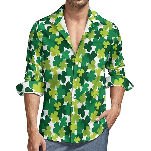 Per uomo San Patrizio Trifoglio Maglia Henley Maglietta Camicia a Maniche Lunghe Manica Lunga Stampa 3D Moda Designer Essenziale Vacanza Giorno di San Patrizio Streetwear Primavera Autunno verde 1