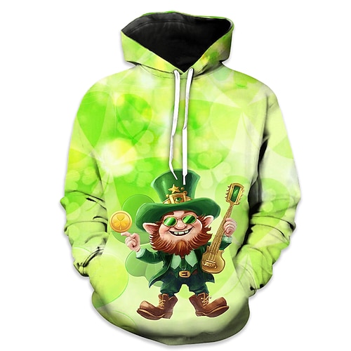 Festa di San Patrizio Gatto Trifoglio irlandesi Felpa con cappuccio Lucky Clover Tasca frontale Grafica Per Da coppia Per uomo Per donna Per adulto giorno di San Patrizio Stampa 3D Feste Casual