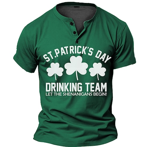 Per uomo Grafico Trifoglio Maglietta Maglia Henley Manica Corta Stampa 3D Moda Designer Confortevole Giorno di San Patrizio Quotidiano Primavera Autunno Nero Verde Henley Maglietta Henley