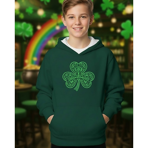 Giorno di San Patrizio Ragazzi 3D Grafico Giorno di San Patrizio Felpa con Cappuccio Maglione Manica Lunga Stampa 3D Primavera Autunno Sport Moda Streetwear Bambini 4-12 Anni Con cappuccio Casuale