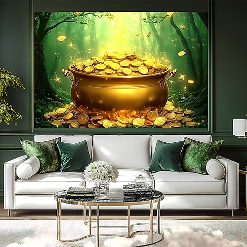 Festa di San Patrizio arazzo Striscioni Coperta Moneta d'oro Cappello verde Trifoglio Carino Romantico 3D Camera da letto Soggiorno Dormitorio Stanza per adolescenti Dormitorio universitario Portico
