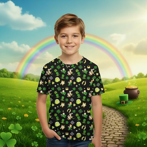 Giorno di San Patrizio Unisex 3D Grafico Quadrifoglio Giorno di San Patrizio Maglietta Manica Corta Stampa 3D Estate Primavera Sport Moda Streetwear Bambini 4-12 Anni Girocollo Casuale Quotidiano