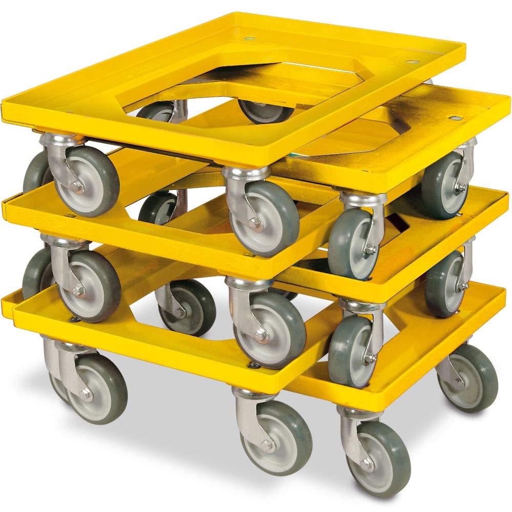BRB 6x Logistikroller/Kistenroller für Behälter 600 x 400 mm, Tragkraft 250 kg, gelb