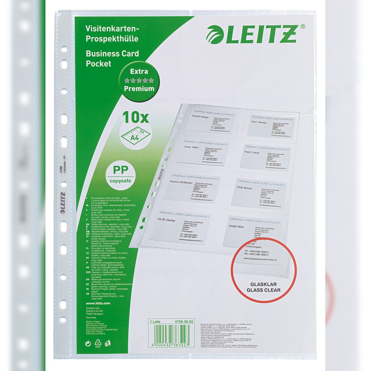 Leitz Visitenkarten-Prospekthülle A4