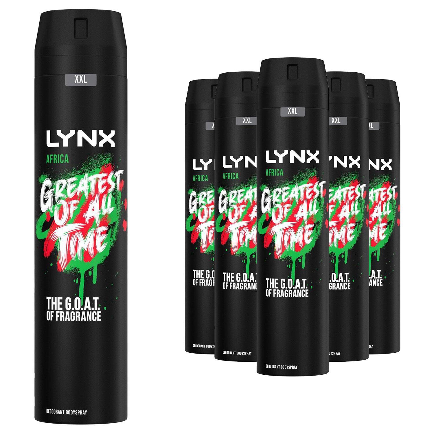 Lynx Mens XXL Deodorant Bodyspray Africa 48H The G.O.A.T. of Fragrance 250ml, 24pk - Size 250 ml | Lynx Sale | Discount Designer Brands
