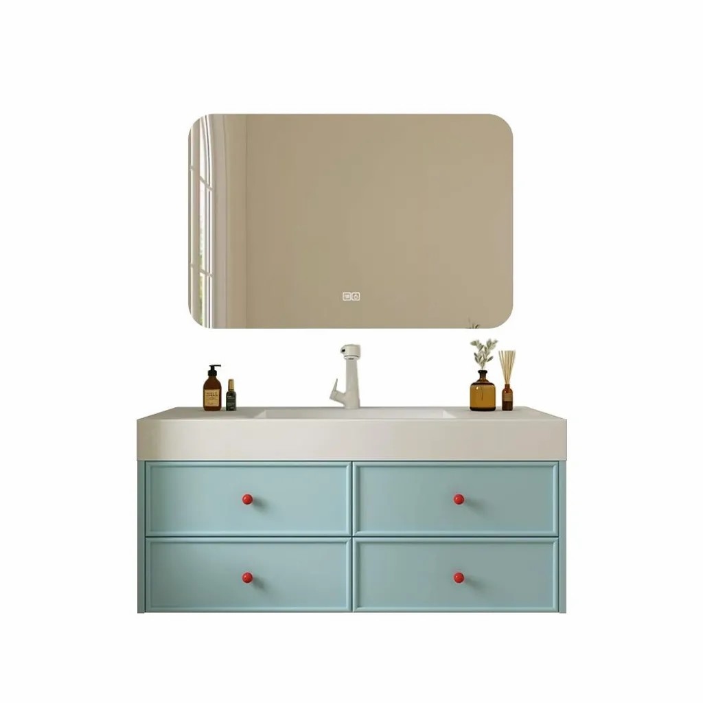 Waschbecken aus Keramik,Badmöbel Set,100x55 cm, Badezimmermöbel,Bad Schränke,Waschtisch,LED-Spiegel,Blau /LSC100/