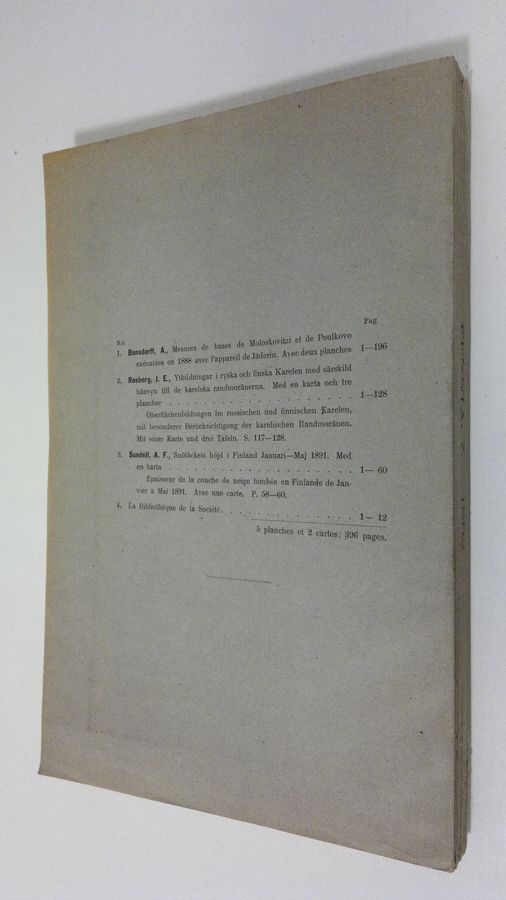 Johan Evert Rosberg : Fennia 7 : Ytbildningar i ryska och finska Karelen mes särskild hänsyn till de Karelska randmoränerna ; Mesures des bases de ...