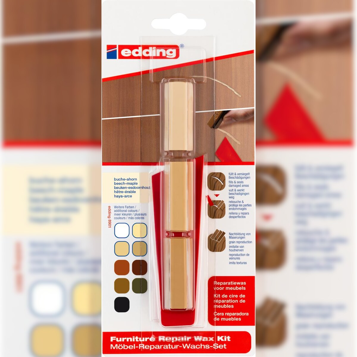 edding 8901 Möbel-Reparatur-Wachs-Set buche/ahorn (3er Blister)