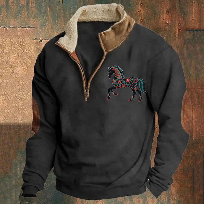 Men's Horse Waffle Sweatshirt Fashion Daily Classic Casual Stand Collar Outdoor Home Office Work Black Blue Purple Brown Green Zip Up Fall Winter Designer S M L XL XXL XXXL