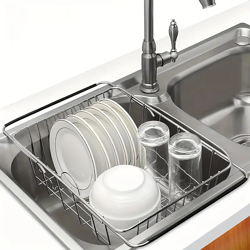 Stainless Steel Dish Drying Rack – 3-in-1 Expandable Dishwasher Countertop Drying Rack, Rust-Resistant 304 Steel, Multi-Purpose Utensil Holder for Plates, Bowls, Cups Cutlery
