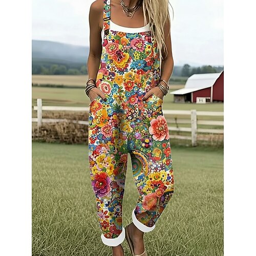 Per donna Salopette Attivo Floreale Senza Maniche Harem Coulisse con tasca Vacanza Streetwear Vestibilità comoda Nero Bianco Blu Estate
