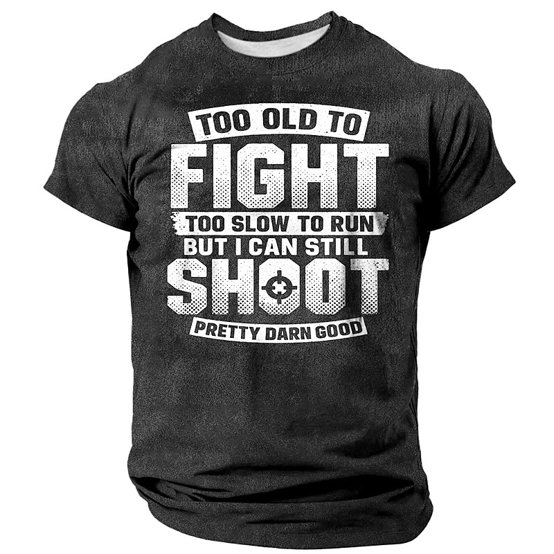 Mens Funny Shooting T-Shirt - Too Old To Fight But Can Still Shoot Graphic Tee, Hobbies Lifestyle Gift