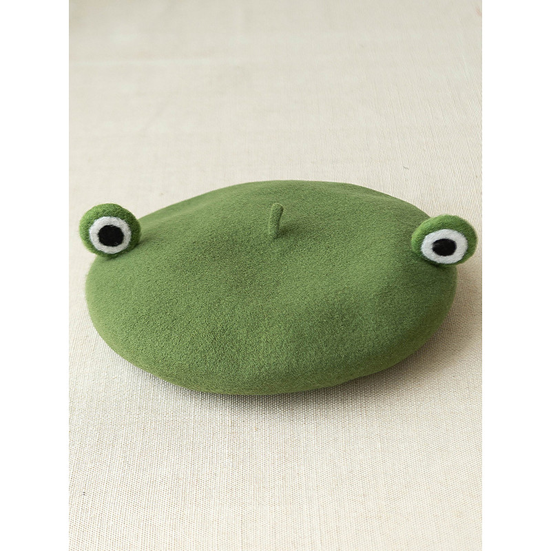 Women's Cute Animal Beret – Wool Felt Cap with Ears (Fox, Frog, Deer) in Multiple Colors for Carnival, Cosplay and Costume Parties