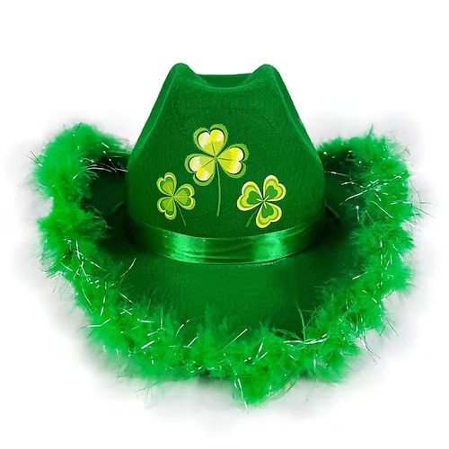 Cappello di San Patrizio - Cappello da cowboy portafortuna creativo in feltro Cappello da cowboy da donna per San Patrizio con motivo a trifoglio Trasformazione costume da festa per donna