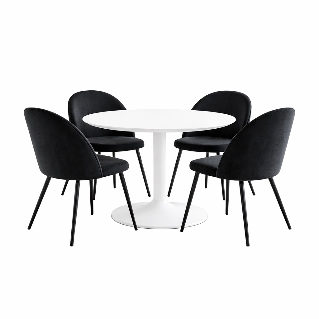 Carry Essgruppe Tisch Ø110cm, 4 Stühlen Velour schwarz.