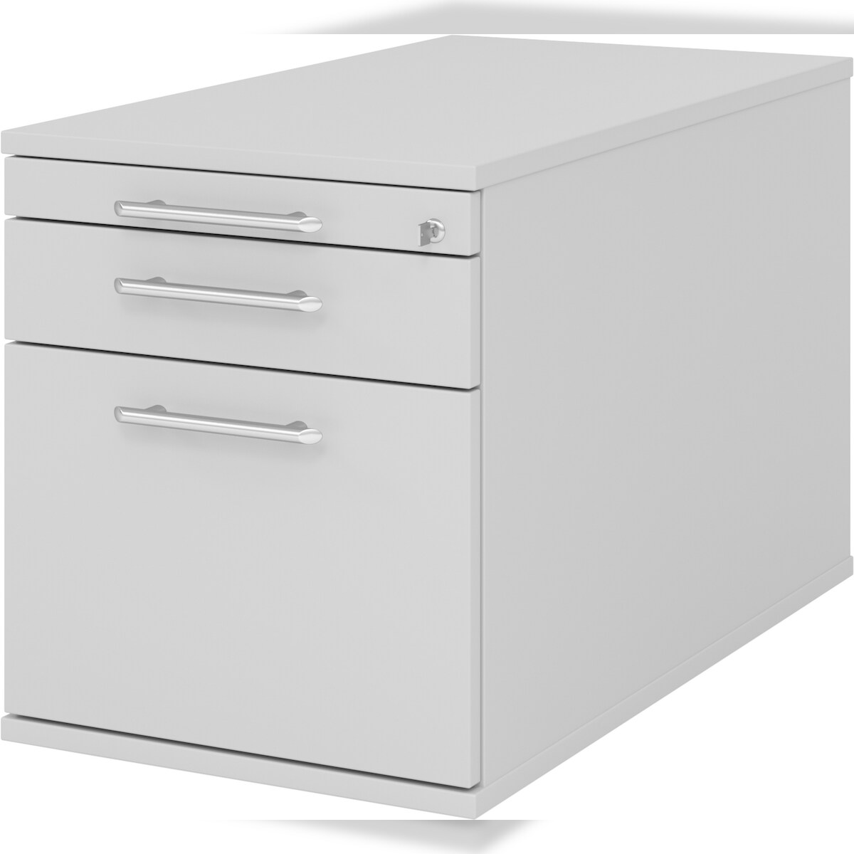 bümö Rollcontainer mit Hängeregister für Hängeordner, Container abschließbar in grau - Rollwagen mit Hängeregistratur als Schreibtisch Unterschrank