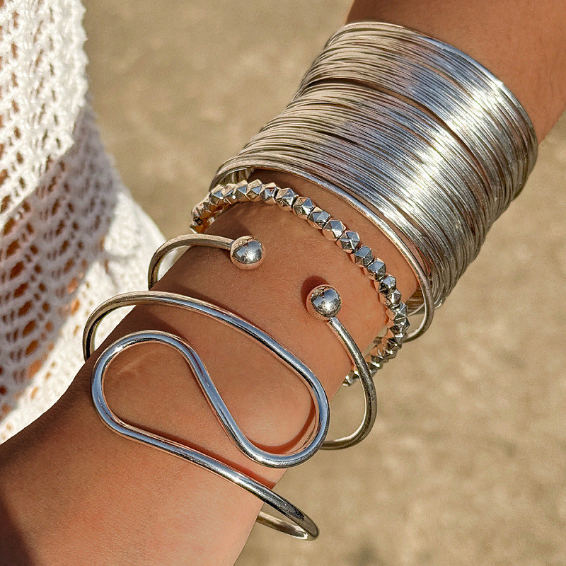 Carnival 2026Rio Carnival Samba Accessories Mixed Style Silver Bracelets for Women - Layered Coil Wire Bangles,Brazil Festival Performance Costume