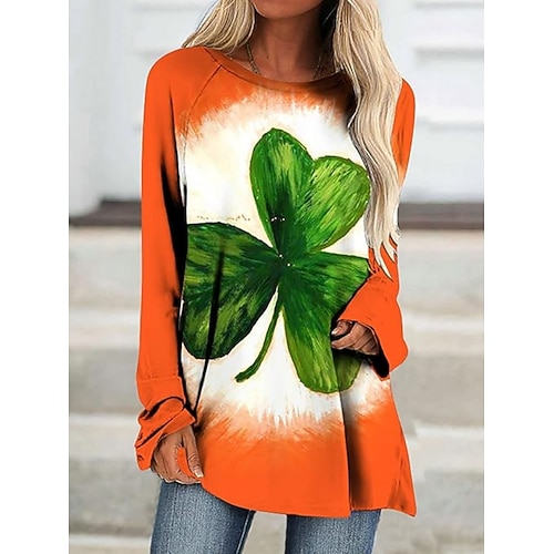 T-Shirt da donna di San Patrizio Quotidiana Casuale Maniche Lunghe Arancione Autunno Inverno