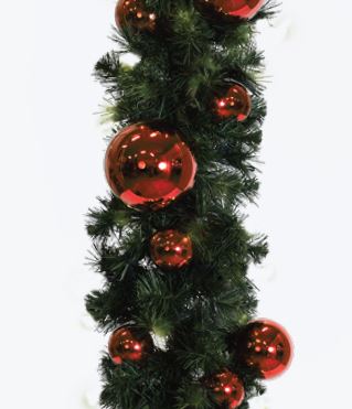 Granguirlande med røde kugler. 700 cm / 87 kugler