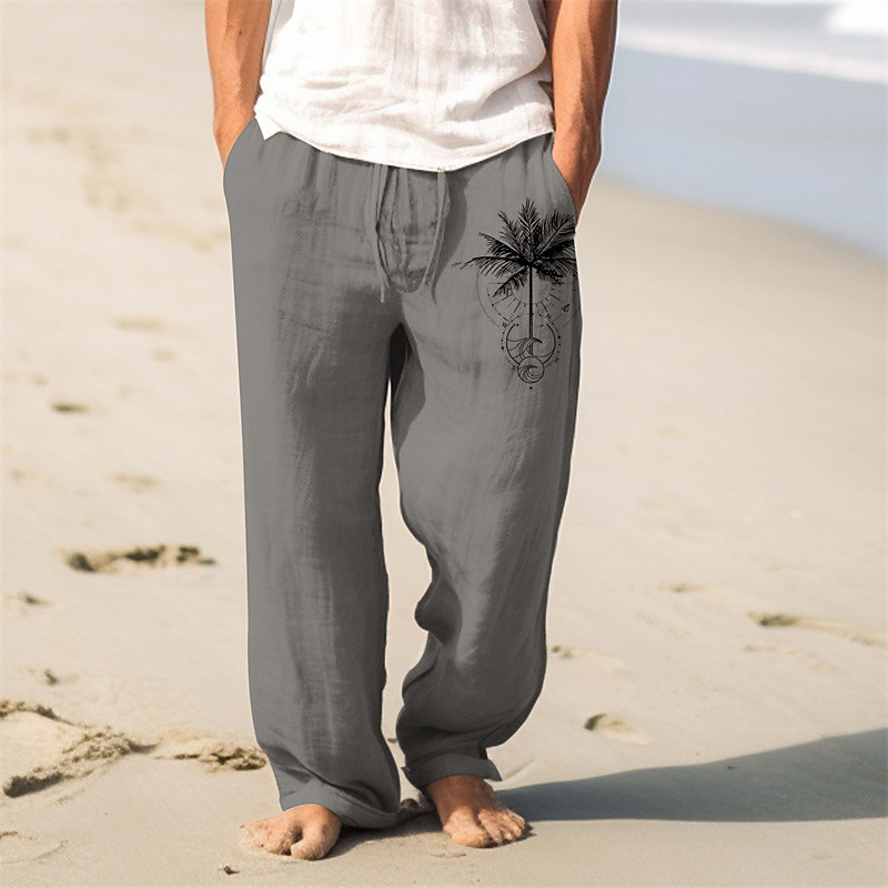 Men's Palm Tree Linen Pants Pants Trousers Baggy Pants Mid Waist Vintage Outdoor Daily Wear Streetwear Fall Winter Black Blue Green
