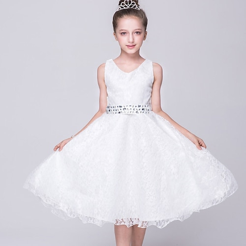 Blumenmädchenkleid Mädchen Formelle Kleidung Hochzeitskleidung Party Hochzeit Formell Formell Kleid für die Erstkommunion Reißverschluss Netz Einfarbig Ärmellos Rundhalsausschnitt Weiß Rosa Ab 4