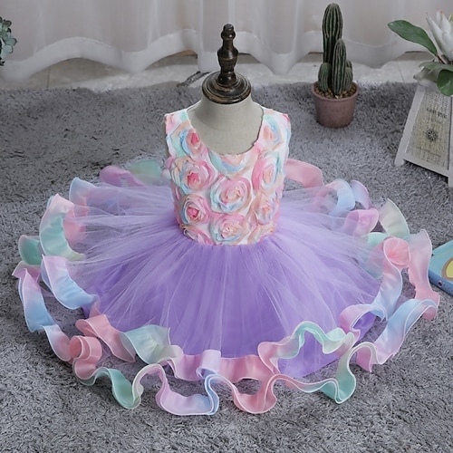 Blumenmädchenkleid Mädchen Formelle Kleidung Hochzeitskleidung Party Hochzeit Formell Niedlich Prinzessin Schön Patchwork Netz Einfarbig Ärmellos Rundhalsausschnitt Rosa Himmelblau Ab 4 Jahren