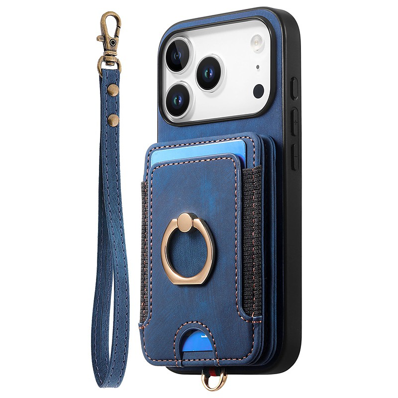 Phone Case For iPhone 17 Pro Max 17 Air Back Cover with Stand Holder with Lanyard Card Slot Retro TPU Oxford Cloth