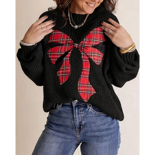 Damen Weihnachtspullover Fair Isle Pullover Pullover Elegant Mode Niedlich Einfarbig Grafik Weihnachtsmann Rundhalsausschnitt Gestrickt Druck Langarm Normale Oberteile Stricken Weihnachten Outdoor