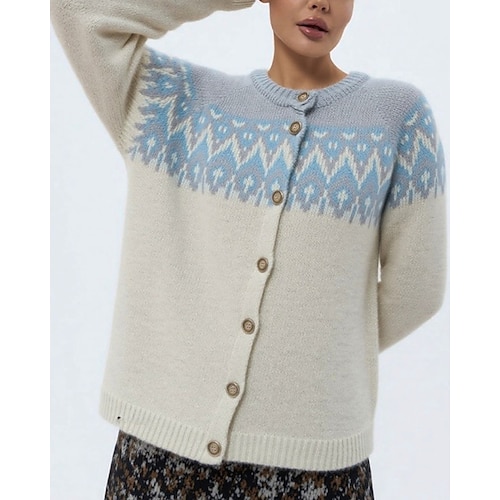 Per donna Maglione natalizio Fair Isle Felpa Cardigan Elegante Moda Streetwear Geometrico Treccia Girocollo Tasca Lavorato a maglia Manica Lunga Top Regolari Maglia All'aperto Quotidiano Weekend Blu