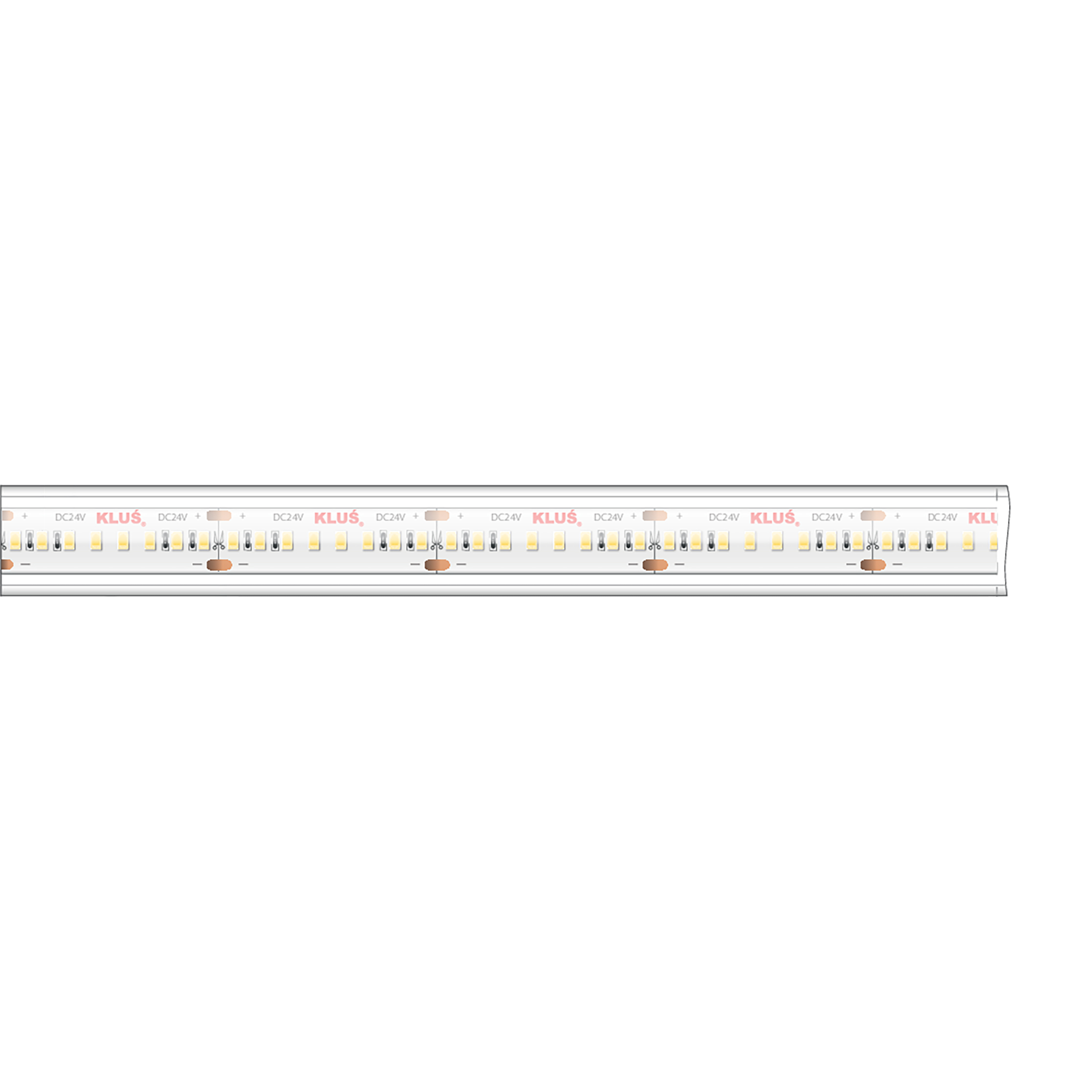 KLUS LED strip - 0,8cm breed, 500cm lengte - 24Vdc - dimbaar - 9,6W LED per meter - 140 LEDs per meter - IP20