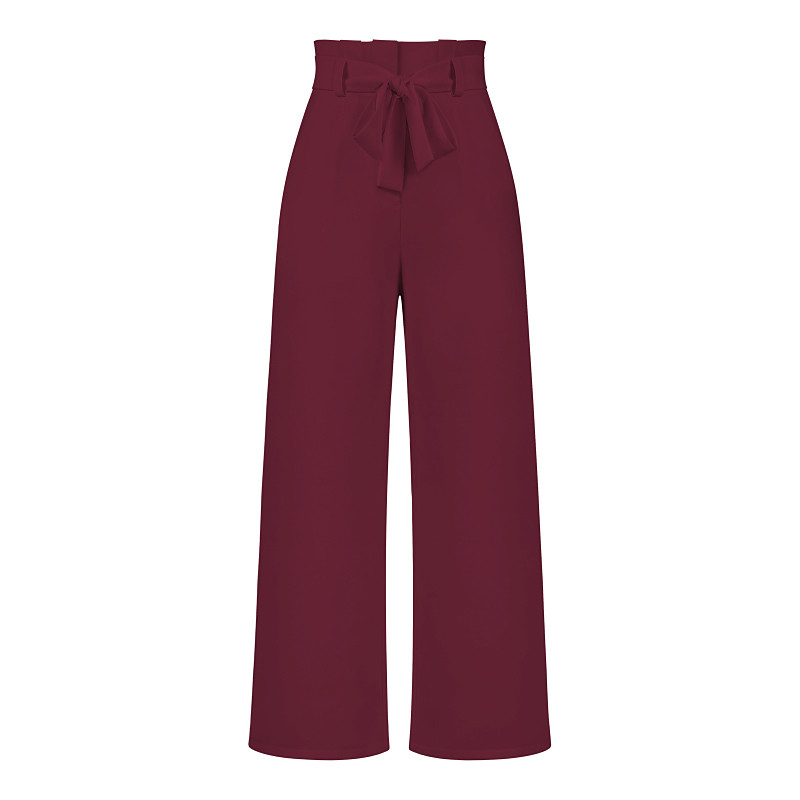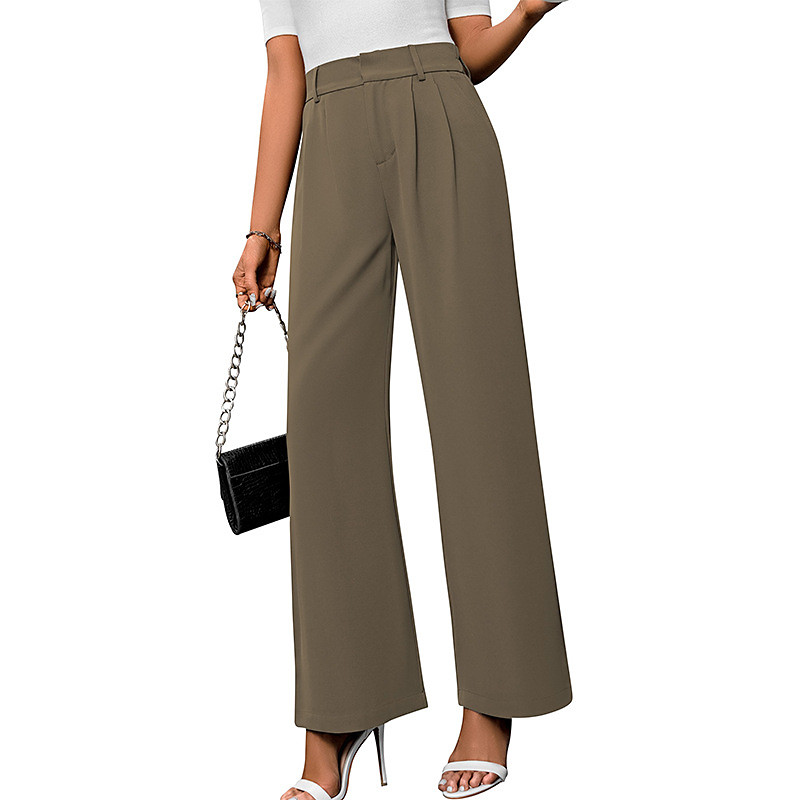 Women's Wide Leg Dress Pants Streetwear Stylish Full Length Natural Plain Pocket Elastic Waist Comfy Formal Office Street claret Dark-Gray Yellow Coffee Fall Regular Fit