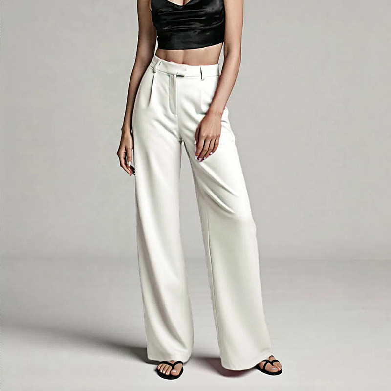 Women's Wide Leg Dress Pants Pants Trousers Fashion Full Length Natural Plain Side Pockets Comfy Breathability Office / Career Business Black White Yellow Pink Spring Fall Regular Fit