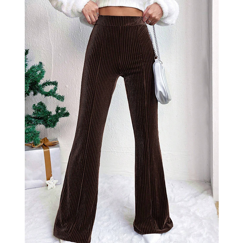 Women's Wide Leg Corduroy Pants Streetwear Stylish Full Length Natural Plain Elastic Waist Comfortable Street Holiday Weekend Rust Navy Black Green Fall Winter Regular Fit