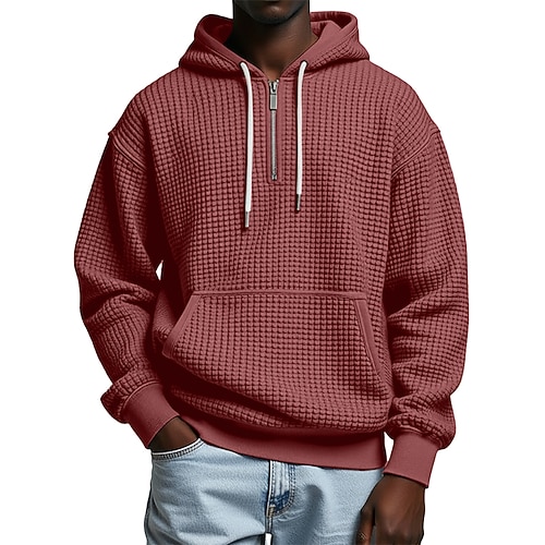 Per uomo Felpa con cappuccio Felpa con cappuccio a nido d'ape Blu Aalbicocca Rosso bordeaux Nero Verde chiaro Con Cappuccio Semplice Tasca a marsupio Testurizzato Sport Outdoor Casuale Quotidiano