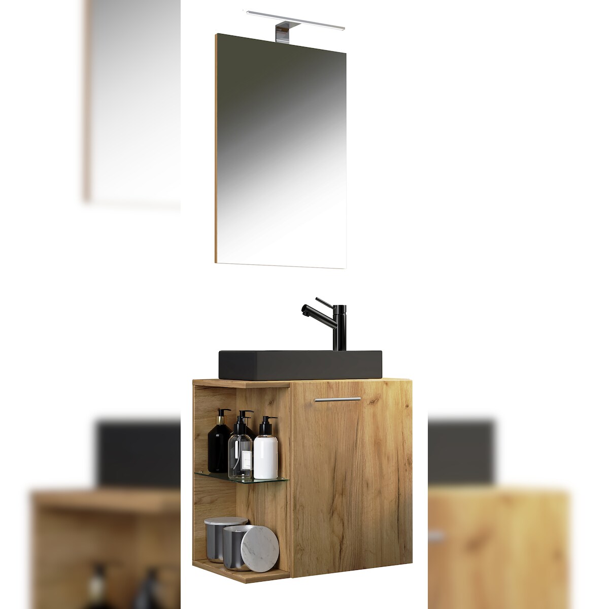 VCM Badmöbel Waschtisch Hausa Honig-Eiche H. 122 x B. 52 x T. 34 cm