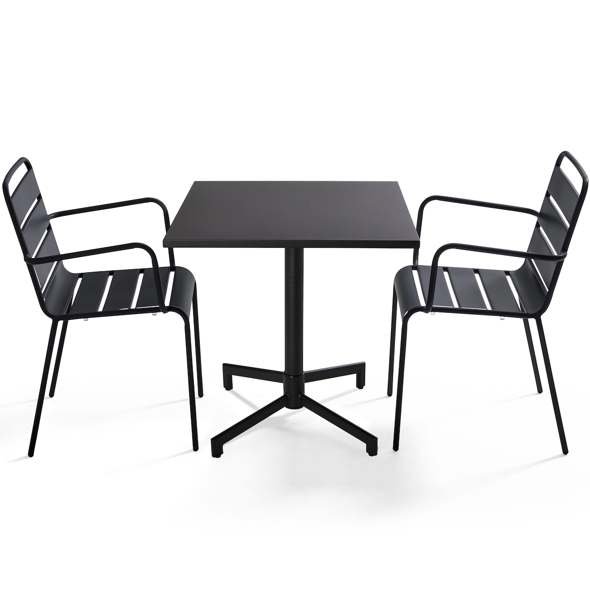 Oviala Business Set aus 70 cm Tisch und 2 grauen Gartensesseln aus Metall
