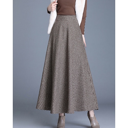 Per donna Gonna Svasato Moda Midi Vita media Gonne Plaid Arricciato Micro-elastico Streetwear Quotidiano Vinaccia Grigio scuro Cachi Grigio chiaro Autunno Acrilico