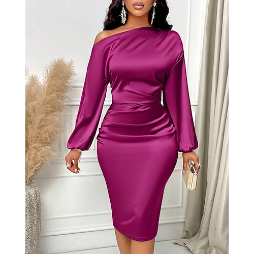 Per donna Mini Abito Vestito da Festa Abito da Cocktail Abito in Raso Attillato Moda Moderno Feste Festa serale Cocktail party Vestibilità regolare Semplice Manica Lunga Top con spalle scoperte Nero