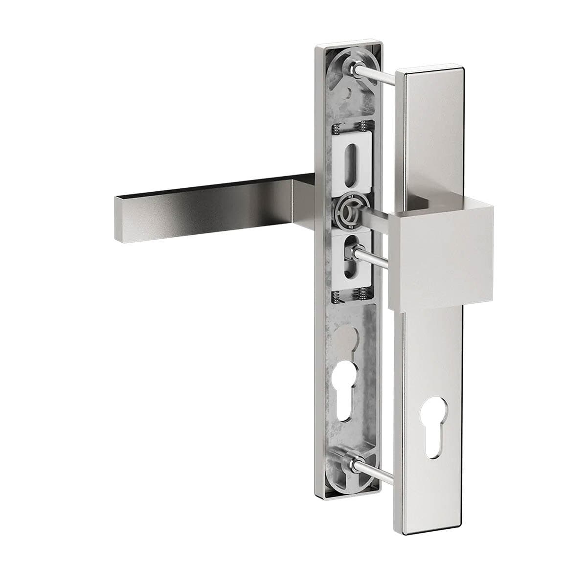 MS Beschläge Schmalrahmen-Wechselgarnitur Edelstahl-Optik - 92mm Alu Langschild Kn/Dr 39-54mm